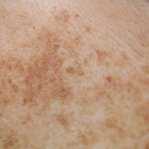 In pigmentation, the skin shows irregular discoloration resulting in an uneven complexion. The cause: overproduction of melanin resulting in dark spots on the skin.