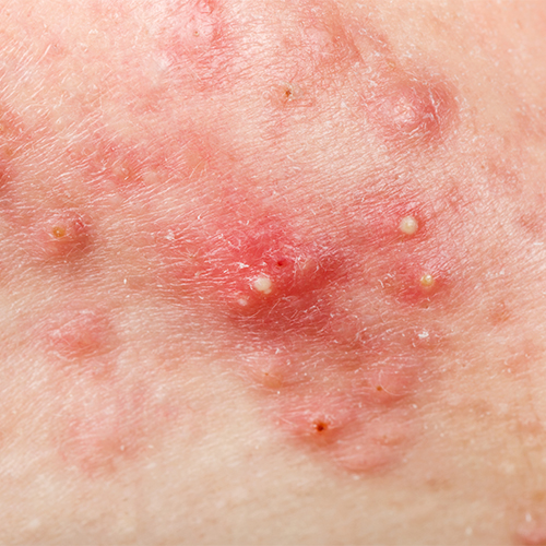 Eczema is an inflammatory reaction of the skin. This inflammatory reaction often causes the skin to see redness, blisters, swelling and chapping. Eczema skin is also often itchy.